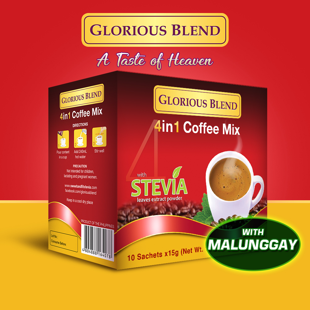 Blend your day to a better health with Glorious Blend 4in1 Coffee Mix with Malunggay sweetened with Sweet & Fit Stevia. Malunggay is the miracle leaf that contains vitamins and minerals along with the anti-oxidants which is essential for the body.