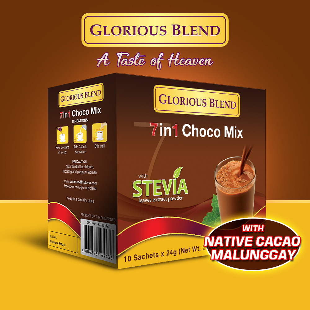 Glorious Blend 7in1 Choco is a fun blend perfect for those who want to enjoy a cup of hot Choco (can be iced too!) while loading up on vitamins and minerals. It has malungay, mangosteen, calcium, goto-kola and Sweet & Fit Stevia.