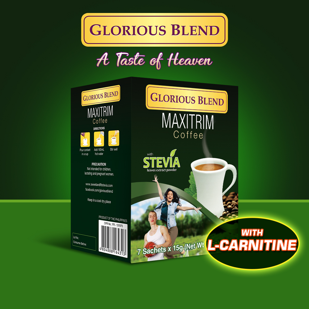 Enjoy your cup of coffee while achieving a leaner body with Glorious Blend Maxitrim Coffee, a robust blend made with L-Carnitine and Malungay which can boost weight loss, increase blood flow, reduce fatigue, and increase muscle mass.